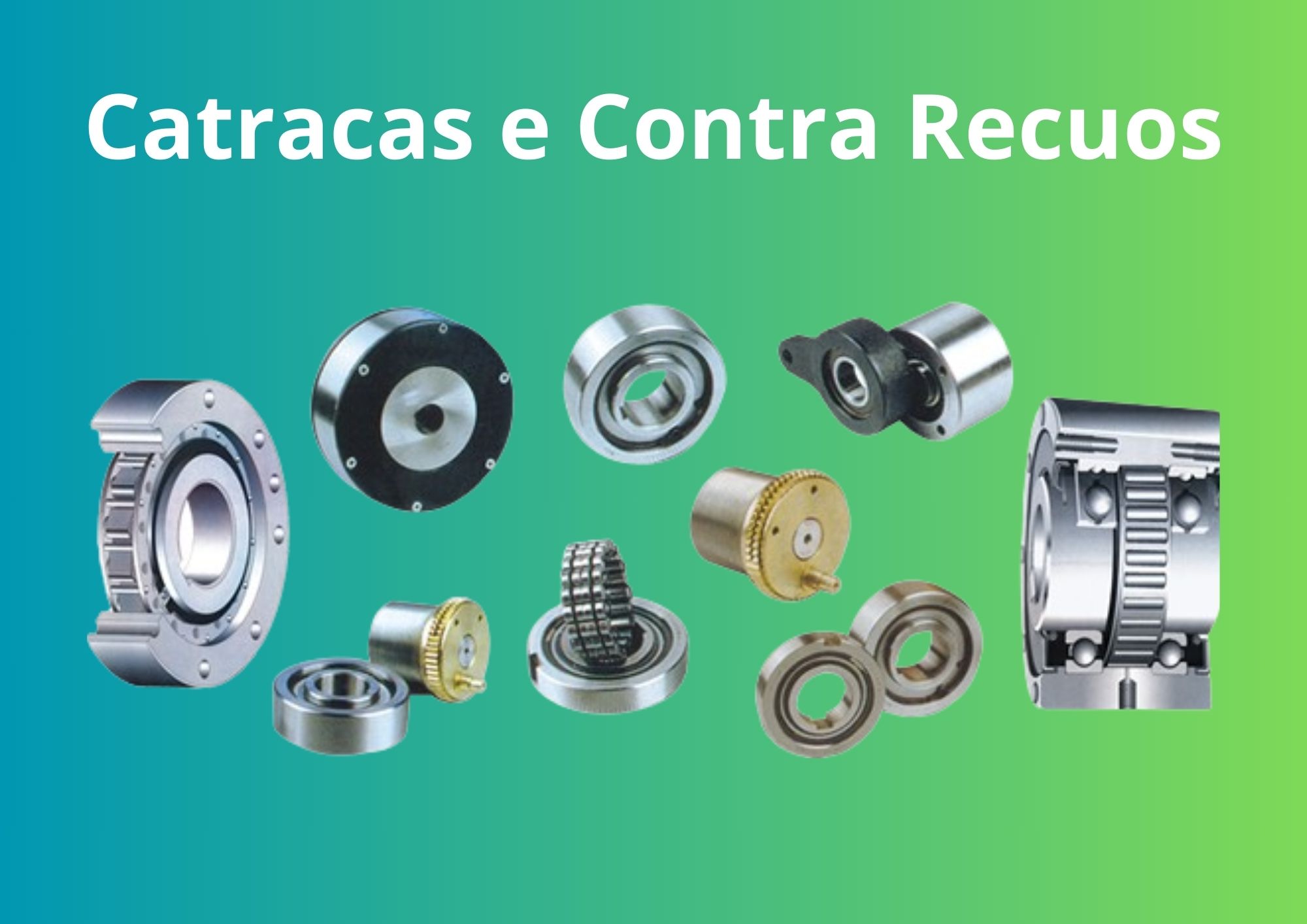 As CATRACAS e CONTRA RECUOS possuem funções de baixa, média e alta rotação. Há diversos modelos de rolamentos contra recuo. Cada um é determinado para uma função. Uma única série oferece diversos modelos, variando diâmetro do furo, capacidade de torque e velocidade. Ao mesmo tempo oferece uma atividade padrão: Evitar retorno sentido oposto ao giro. Trata-se de um dispositivo que permite que seja realizado um movimento relativo controlado entre duas partes. Em geral são equipamento de segurança que garantem que um eixo tenha somente um único sentido de giro. O objetivo principal da Catraca contra recuo é impedir que o sentido de giro do equipamento seja invertido, evitando prejuízos a máquina, além dos gastos financeiros, de tempo e danos operacionais. As aplicações são indicadas para uso em correias transportadoras ou alimentadoras, máquinas de rotulagem e envase, máquinas gráficas, entre outros. De modo geral, atendem equipamentos com eixos de baixa rotação e baixos torques ou baixas rotações e elevados torques.
